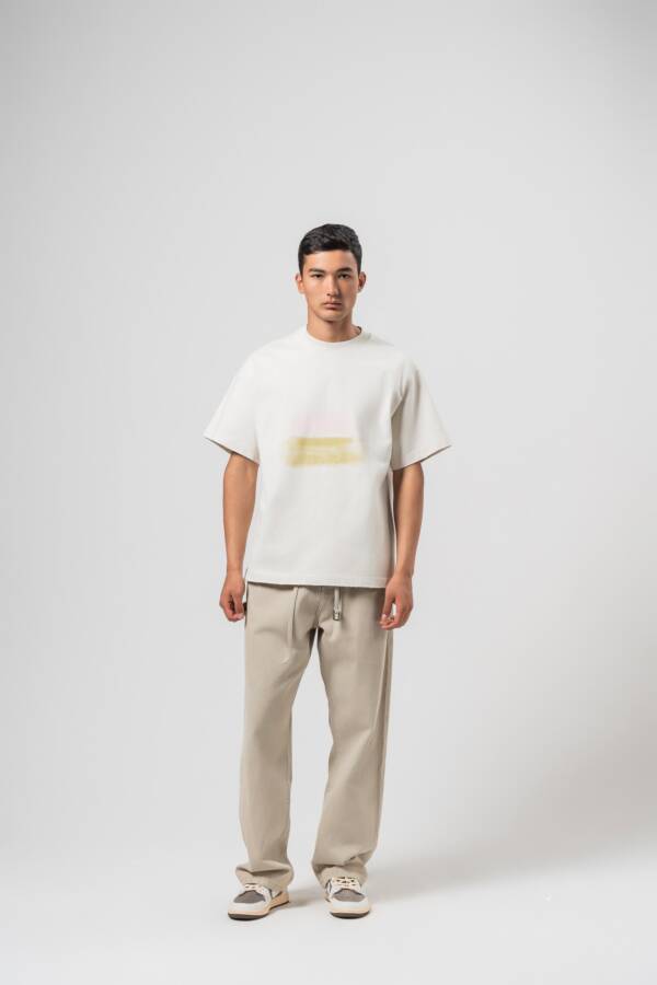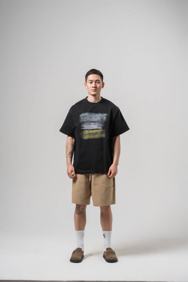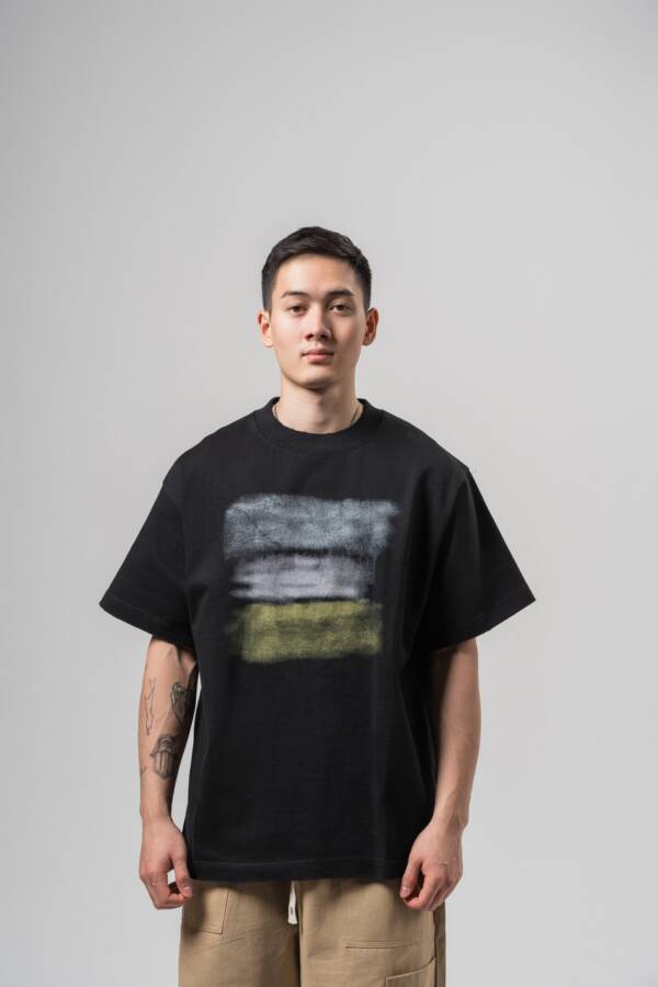 3 LINE MOOD — минималистичная футболка с характером. На груди — три линии, три цвета, три состояния. Абстрактный принт превращает базовую форму в код настроения