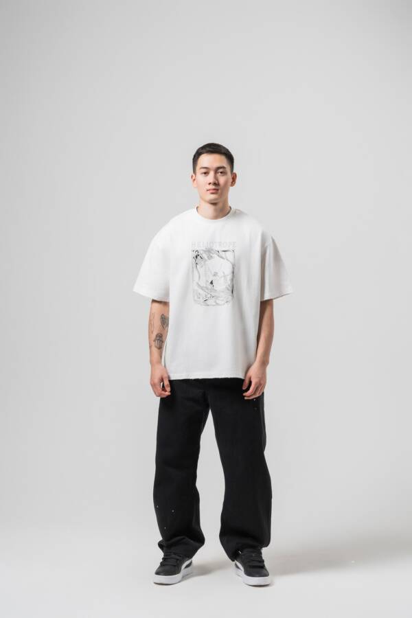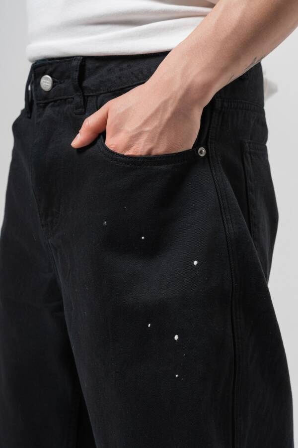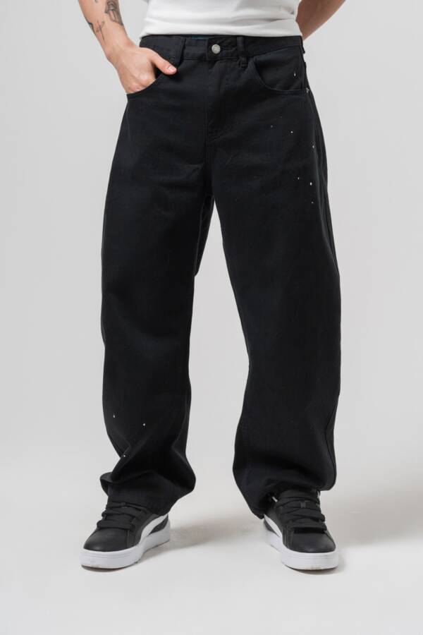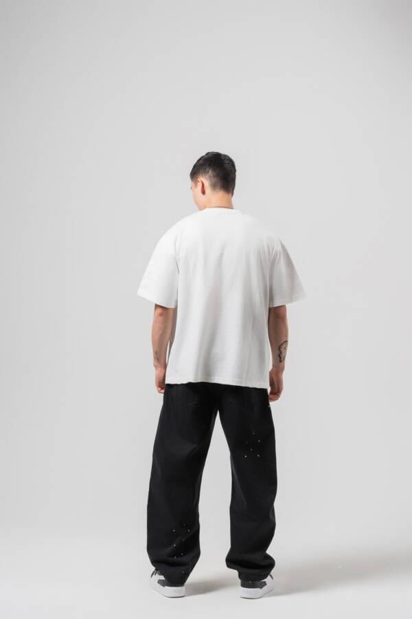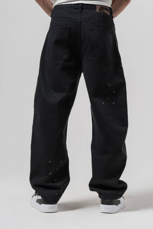 Painted Void — это небрежность, доведённая до стиля. Чёрный деним будто вынырнул из глубины улиц и поймал случайные всплески краски — как следы прошлого движения или метки будущего протеста. Свободный крой и хаотичная фактура создают образ, в котором нет лишнего контроля.
