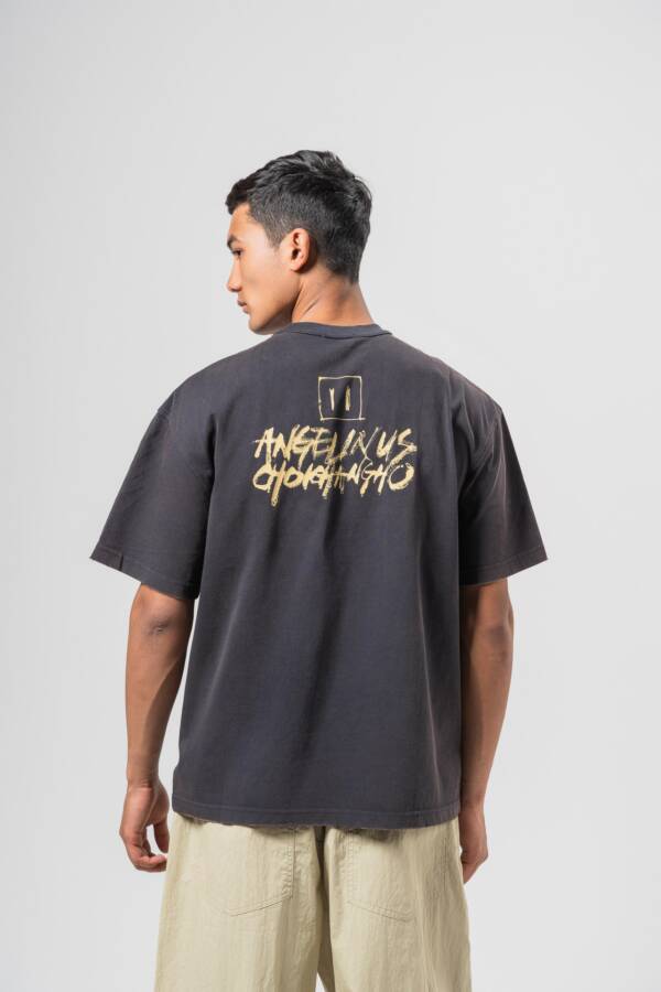 графическая футболка в сером цвете, вдохновлённая уличной символикой и внутренними конфликтами.