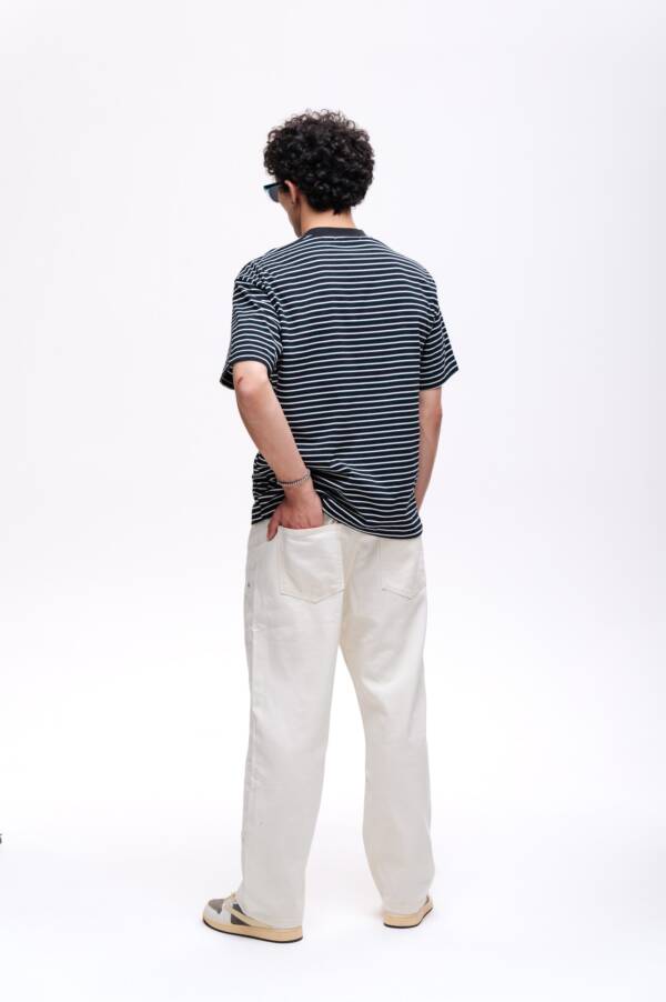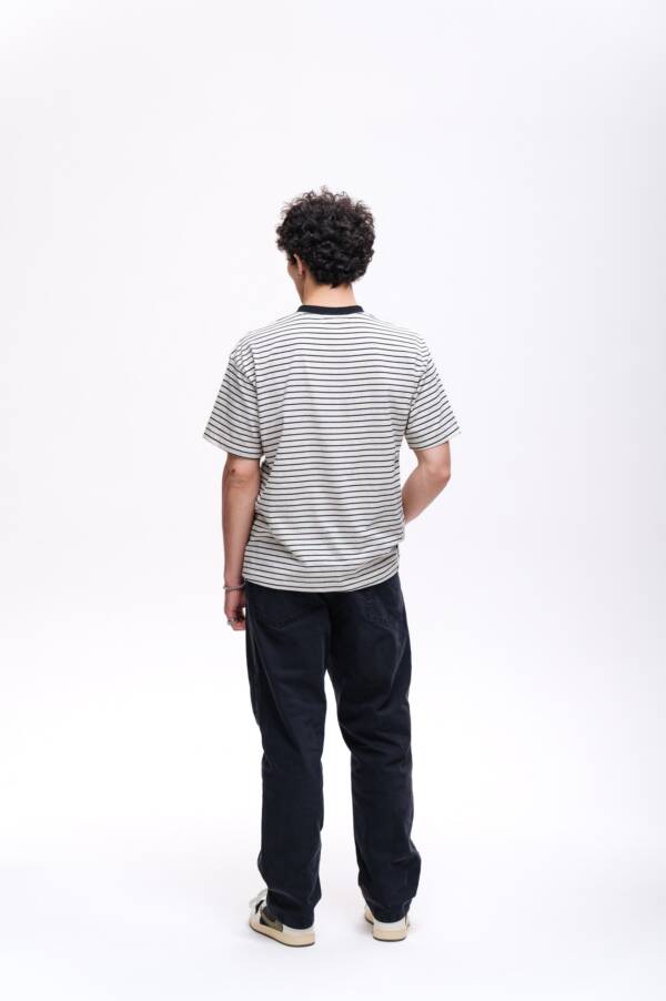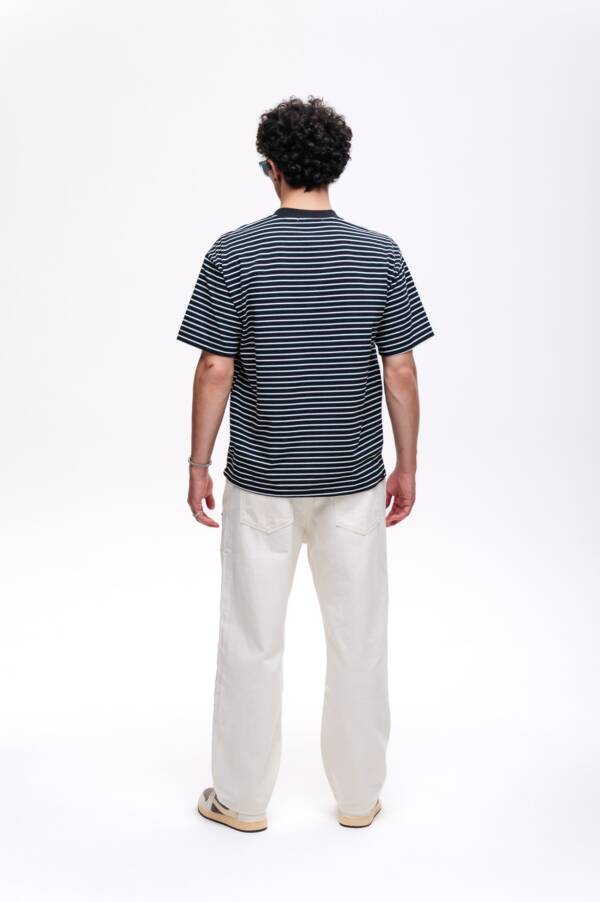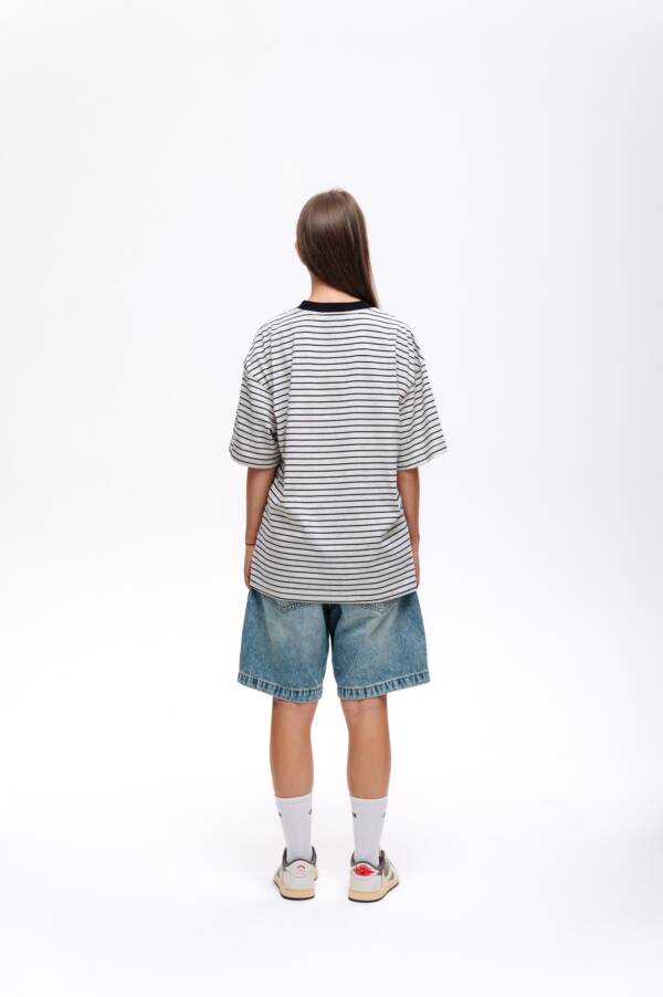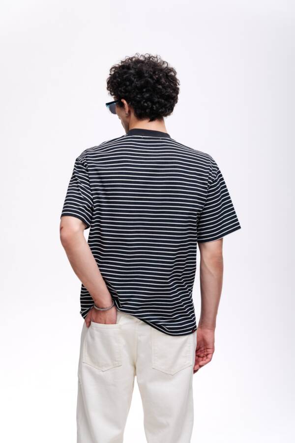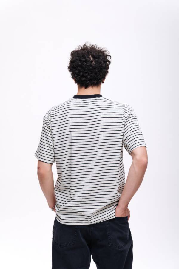 Lineup — ритм улицы в каждой полосе. Футболка свободного кроя из мягкой хлопковой ткани. Горизонтальные полосы создают динамику, но не перегружают. Вписывается в любой летний аутфит.