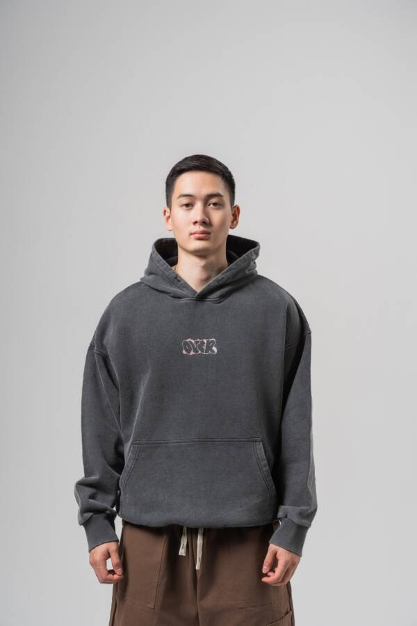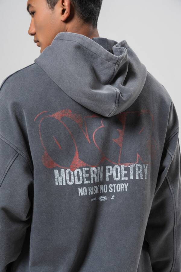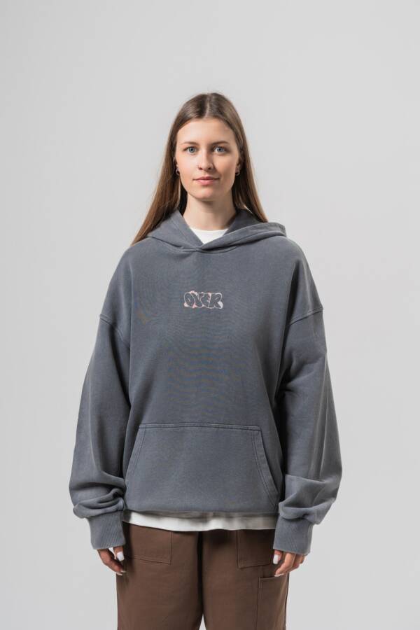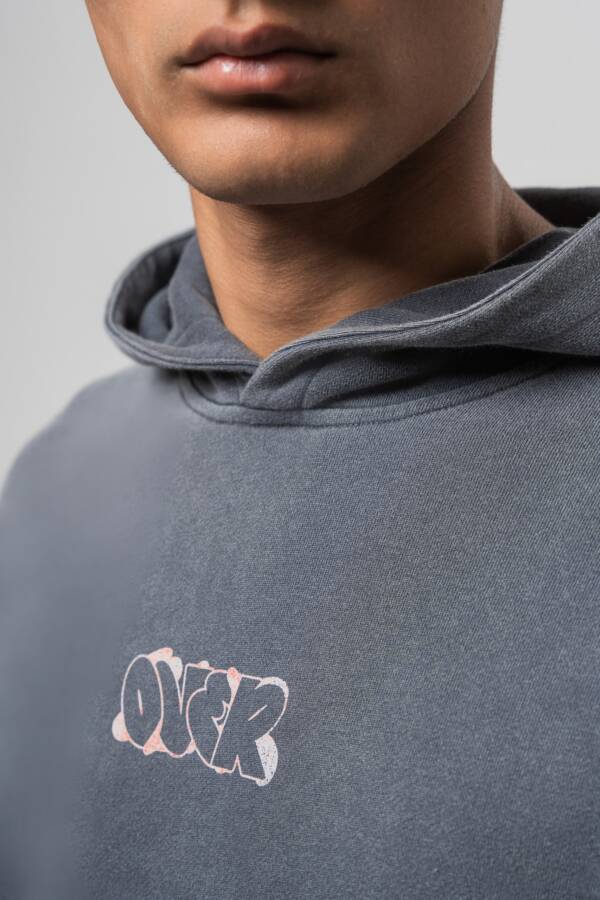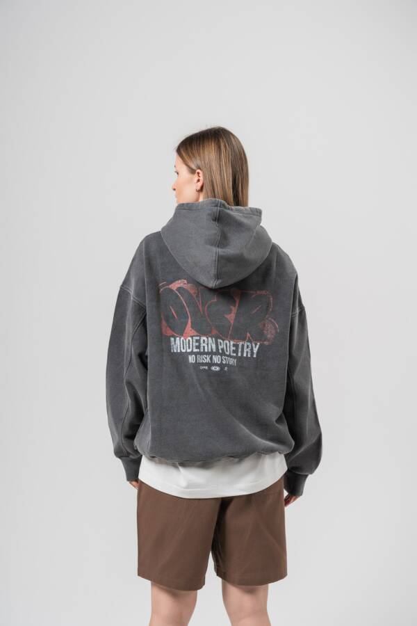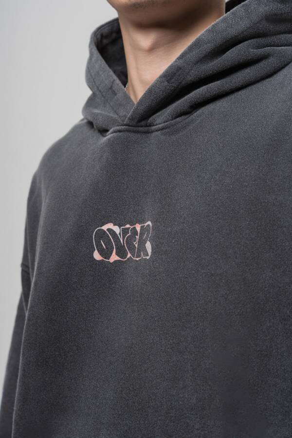 Худи в графитовом цвете. Washed effect, принт на спине — over.