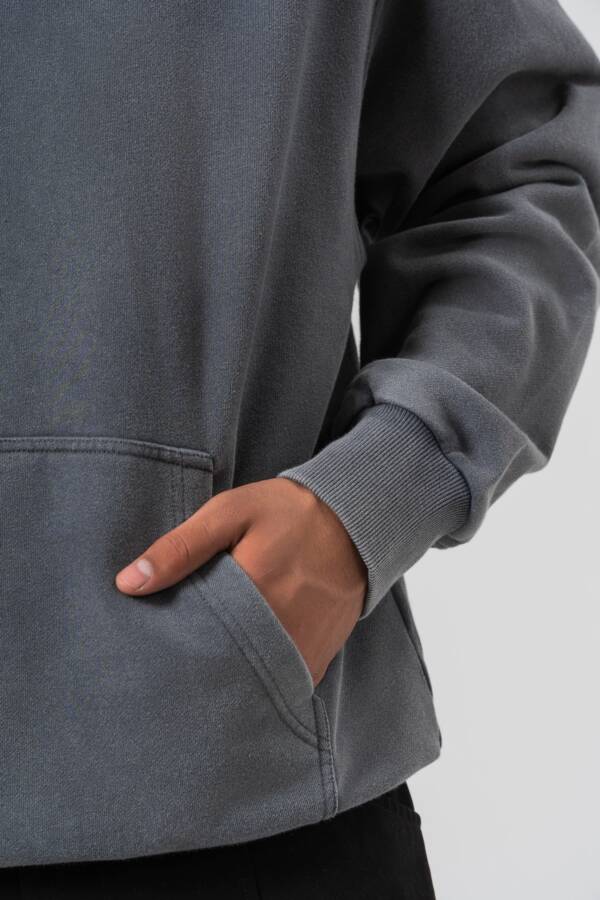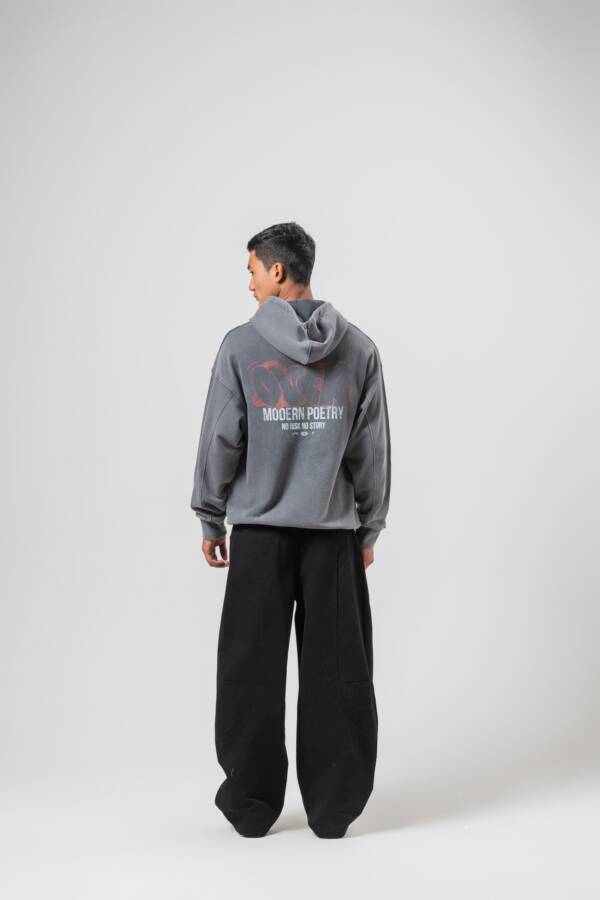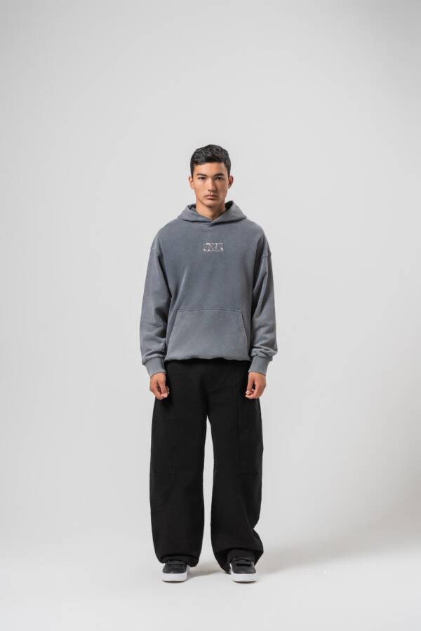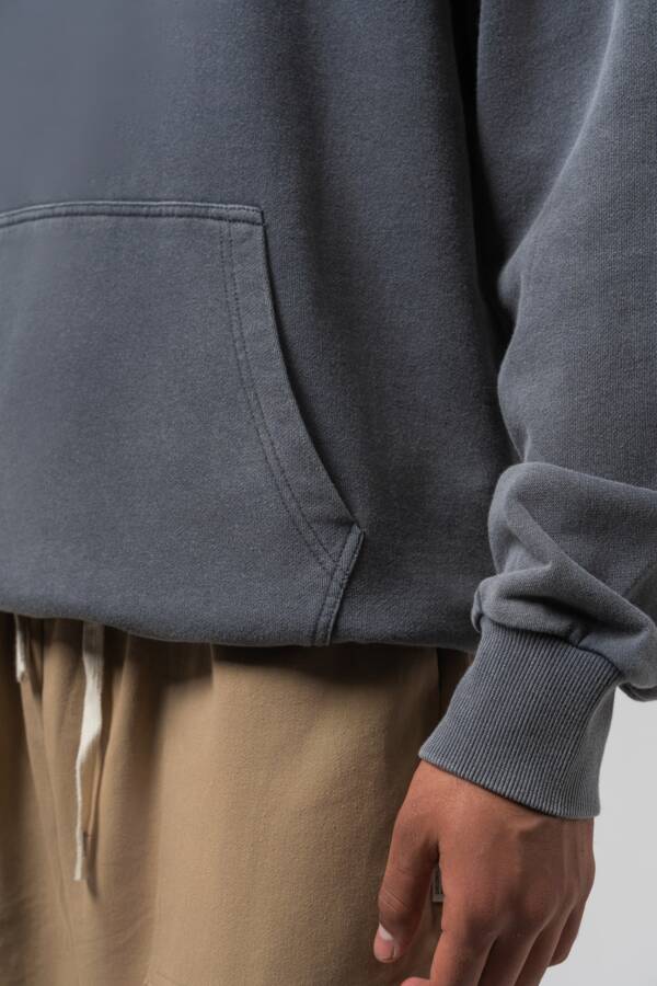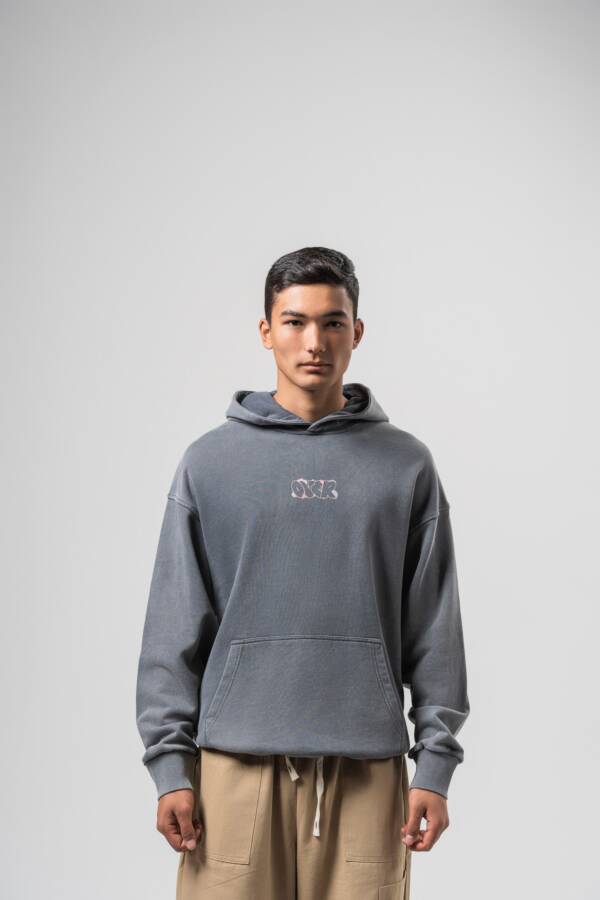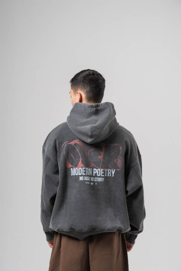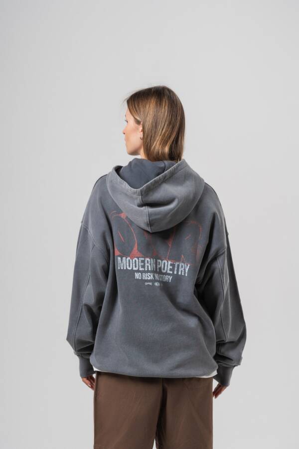 Худи в графитовом цвете. Washed effect, принт на спине — over.