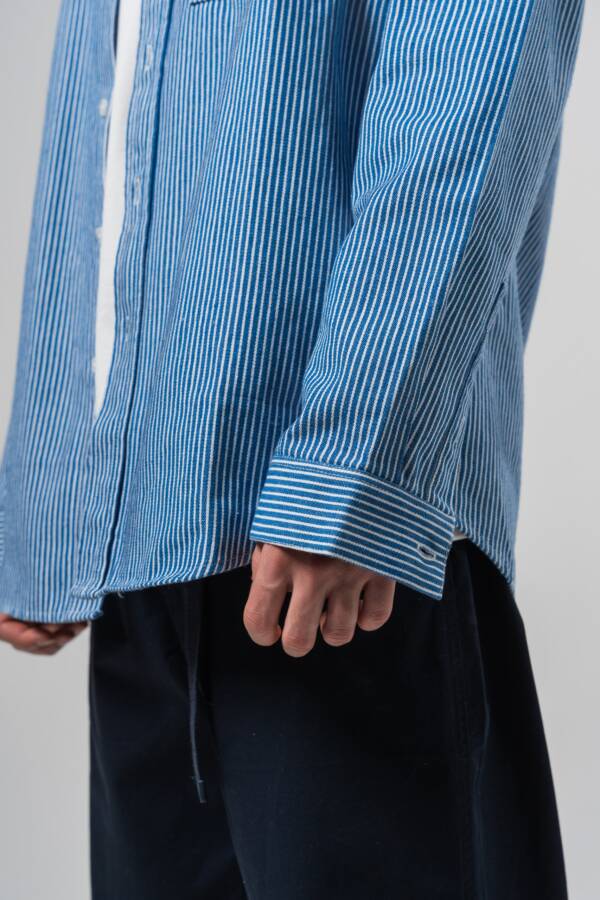 Ровные вертикали, чёткий крой и ощутимая ткань делают её универсальной частью гардероба. Стиль минимализма, близкий к уличной архитектуре — просто, но не скучно. Носится как самодостаточный элемент или слой. Доступна в двух цветах: Белая Синяя 50% Хлопок 50% Полиестер