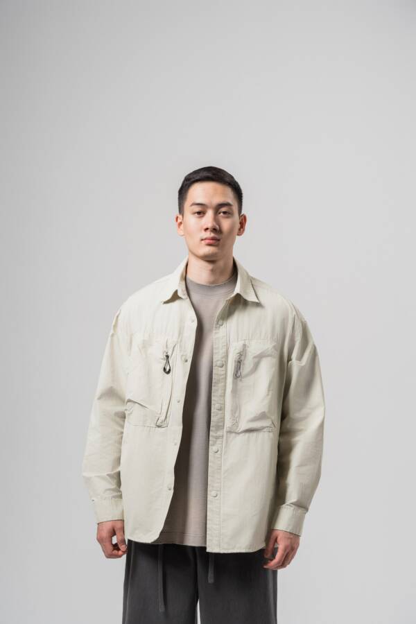 Лёгкая, минималистичная куртка-рубашка из нейлона — базовый слой в гардеробе на каждый день. Разработана для улицы, движения и адаптации к любому стилю: от утреннего города до вечерних встреч. Нейтральный крой и чистые линии делают её универсальной — носи как верхний слой.