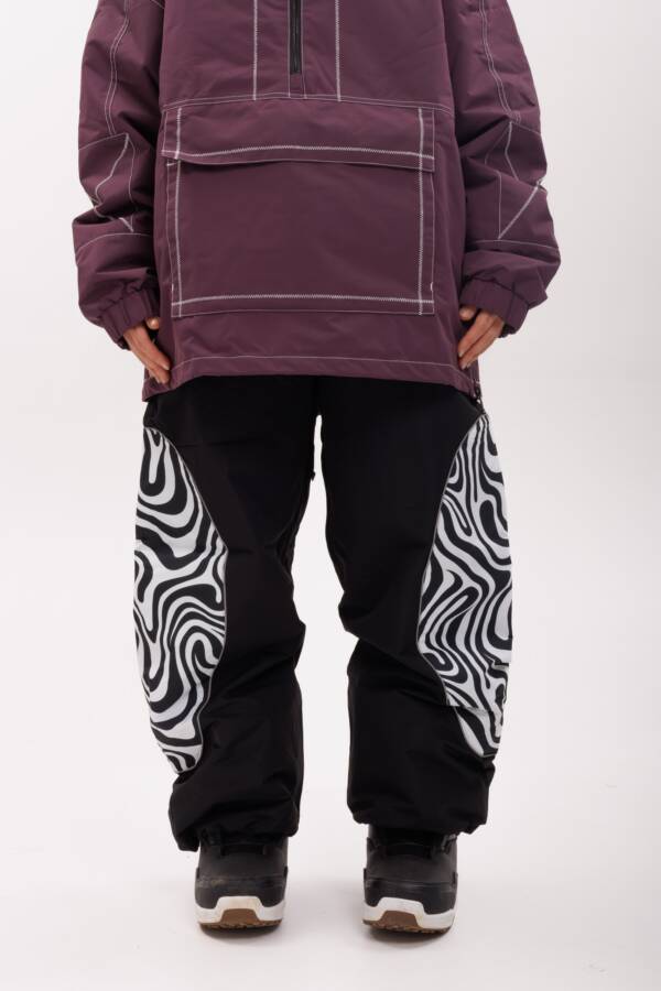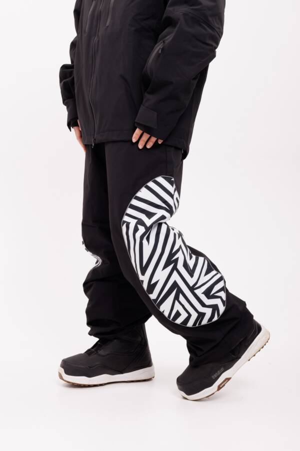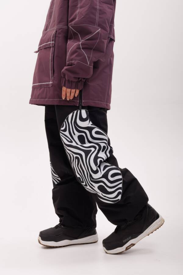 Выразительные штаны с необычным декоративным принтом на области коленей. Сочетают стиль, функциональность и прочность при любых нагрузках.