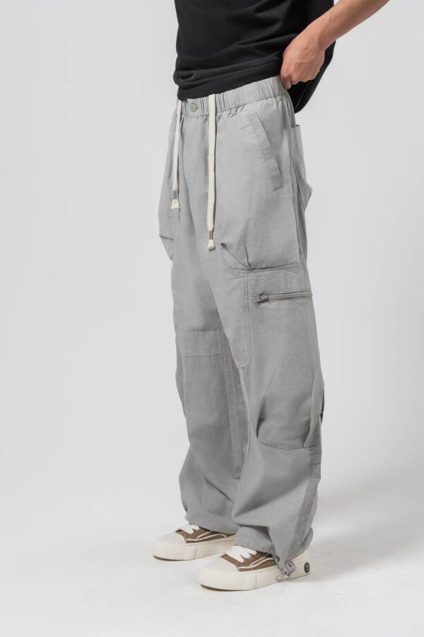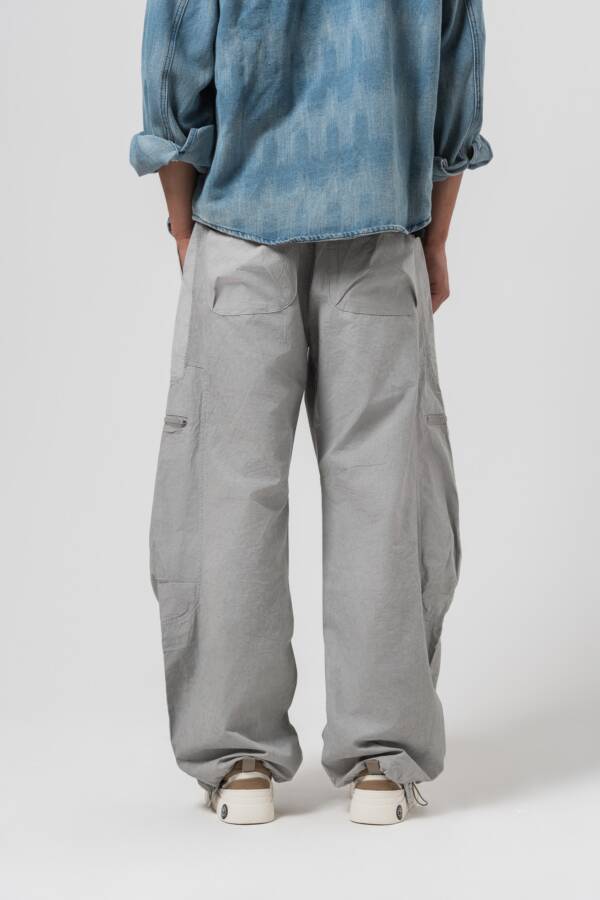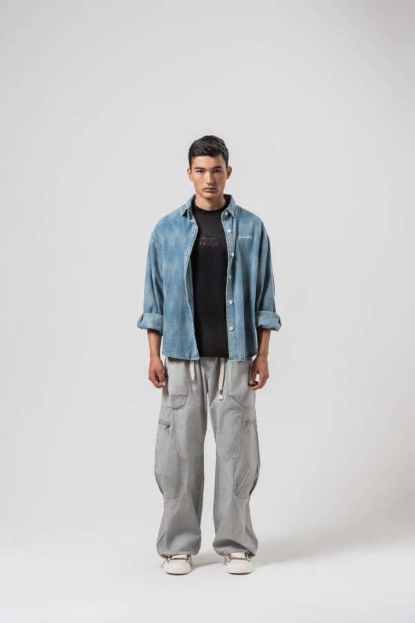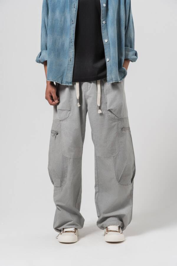 Dropzone — это брюки для тех, кто всегда на грани движения. Они сочетают в себе грубый силуэт, тактильный хлопок и продуманные детали. Широкий сводный крой создаёт объём и свободу, и подчёркивает индустриальную эстетику. Глубокие боковые карманы — не просто деталь, а функциональный элемент уличного ритма.