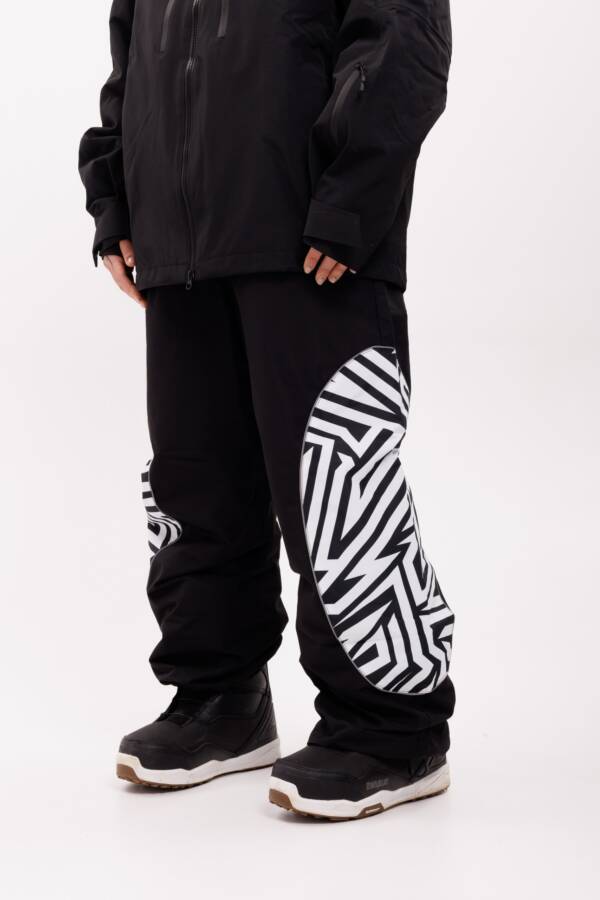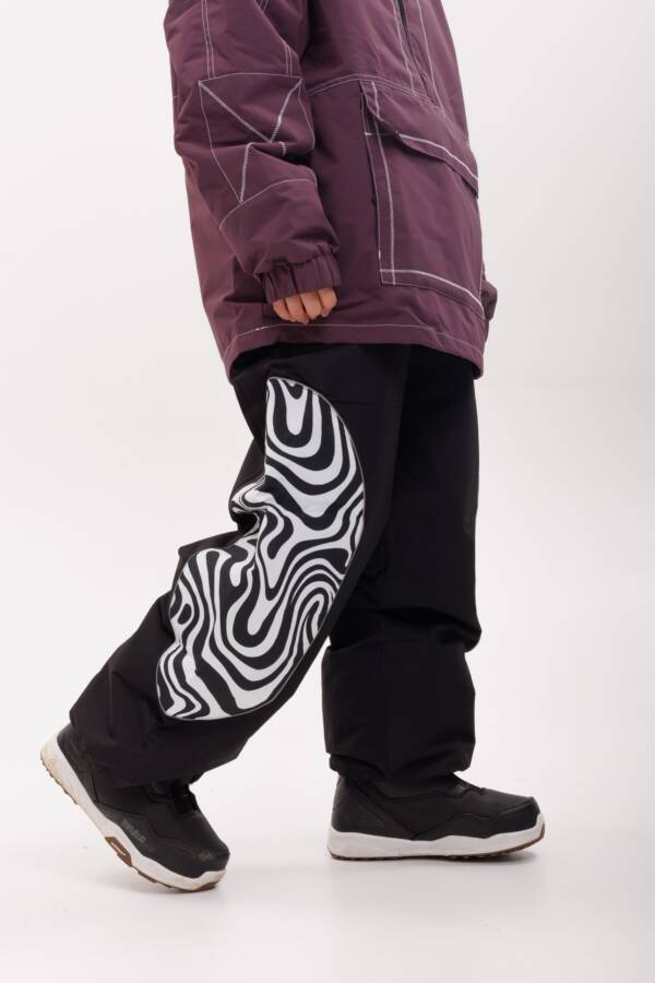 Выразительные штаны с необычным декоративным принтом на области коленей. Сочетают стиль, функциональность и прочность при любых нагрузках.