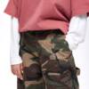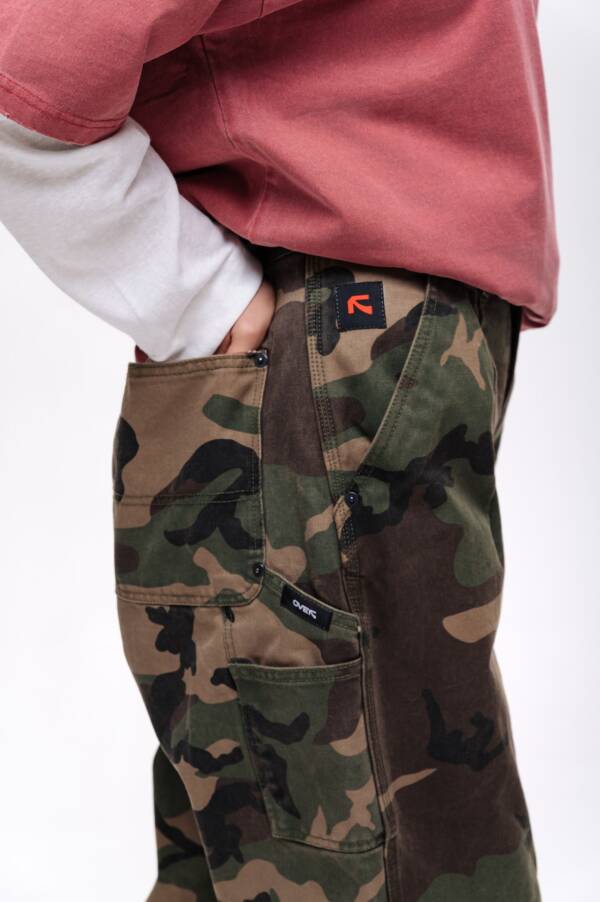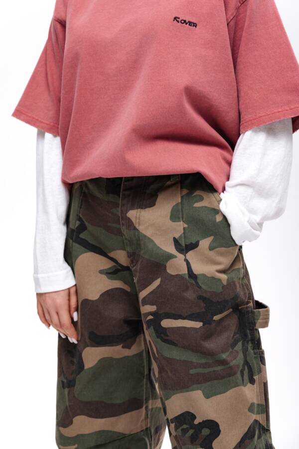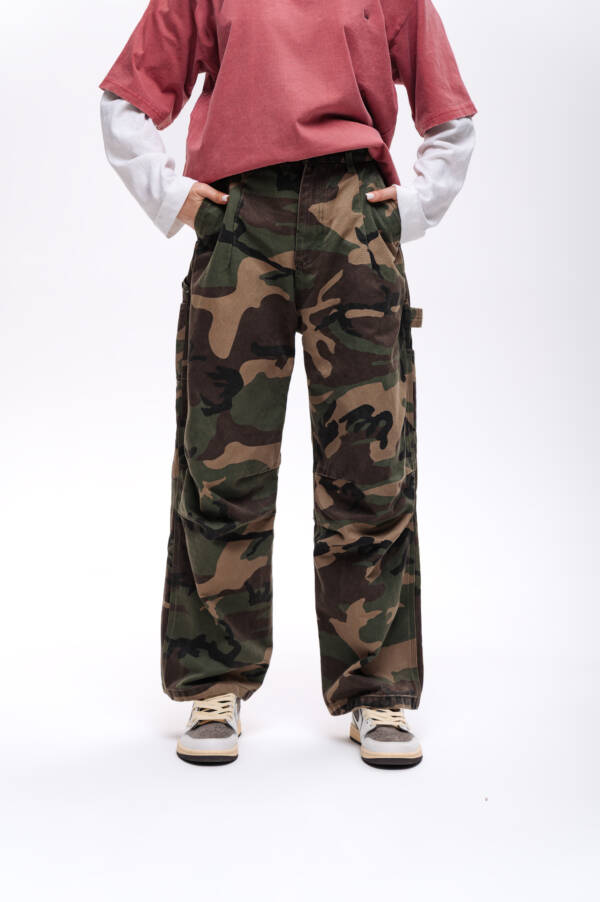 Urban Jungle — карго для городских джунглей. Камуфляжный принт, свободный крой, вместительные карманы. Эти штаны созданы для движения: по улицам, скейтам и планам. Жёсткая подача, практичный стиль.