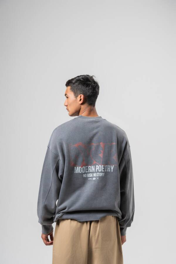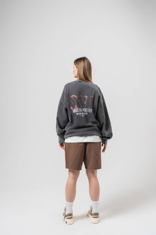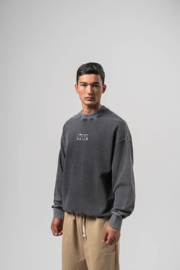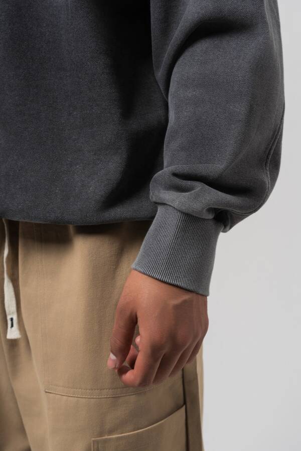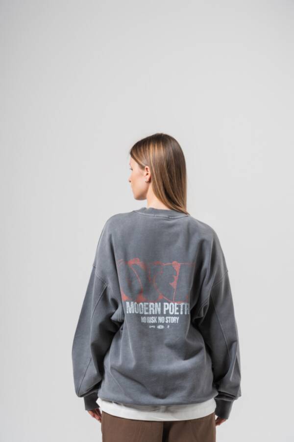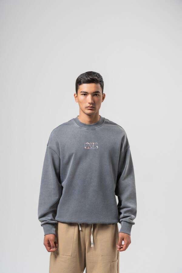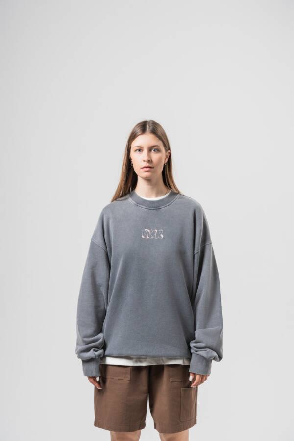 Свитшот с прямым силуэтом, мягкий, но держит структуру. Сдержанный серый делает его универсальным — для улицы, студии, дороги.